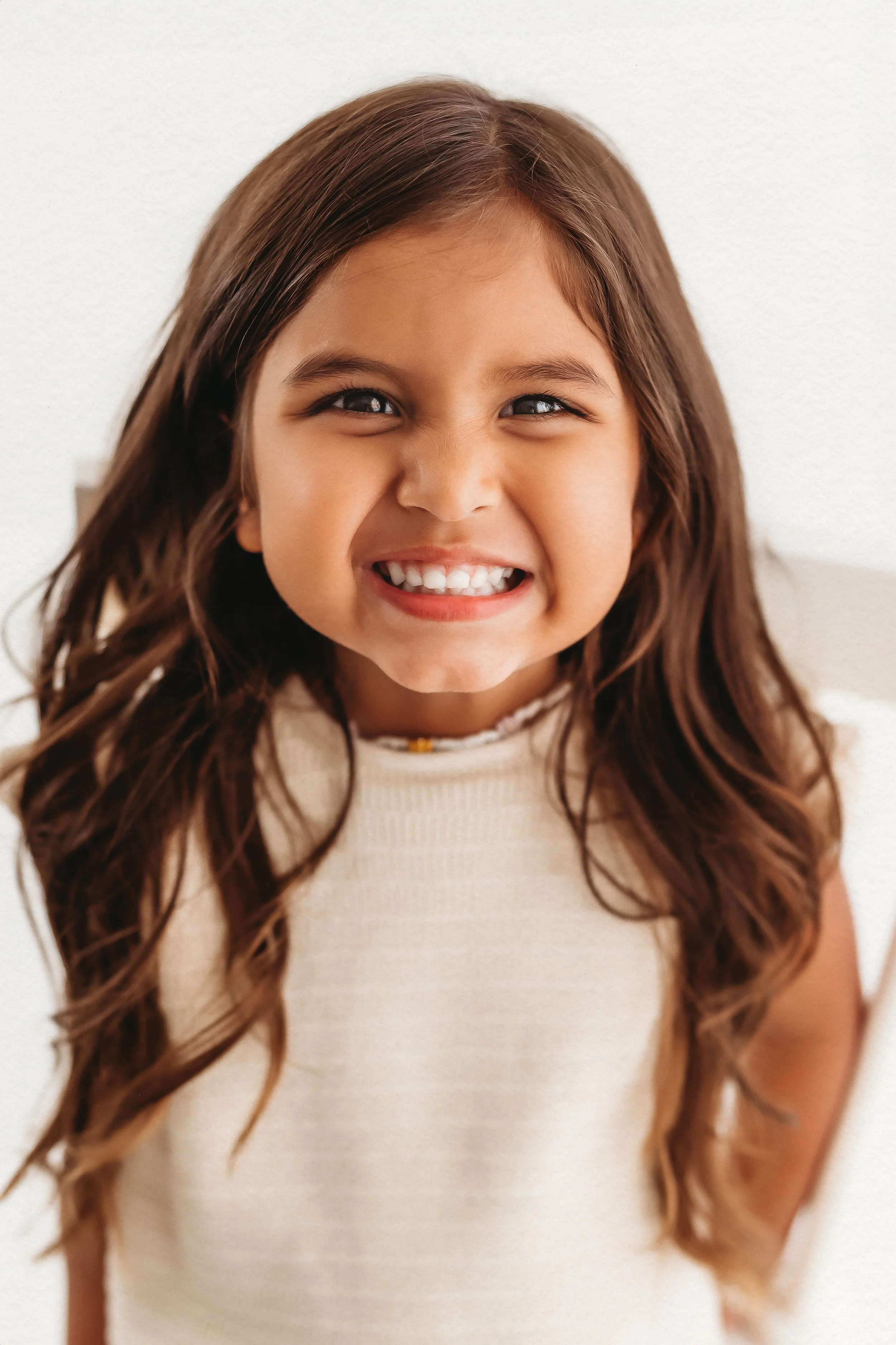 Karlie • Height: 4'7" • Clothes: 8 for tops/dresses, 6 for bottoms • Shoe: 3