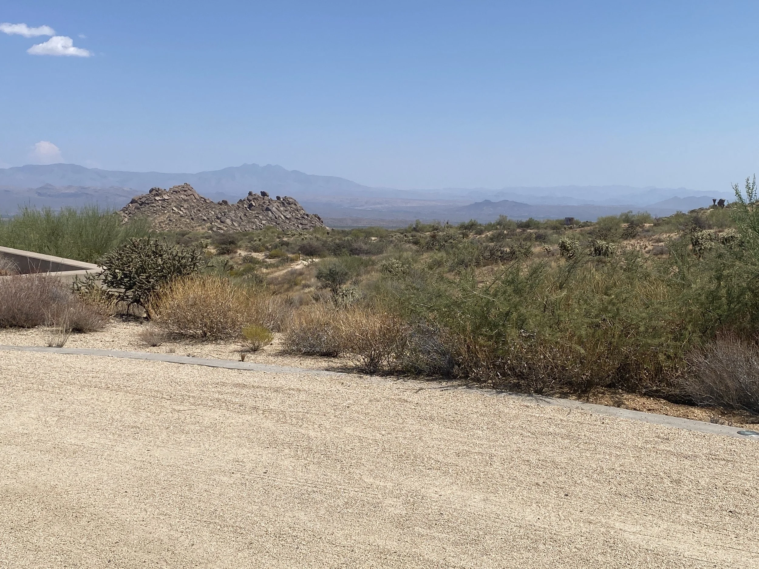 Very limited options for mattress placement - we would have to place it on the gravel area only, with no desert environment in the foreground.
