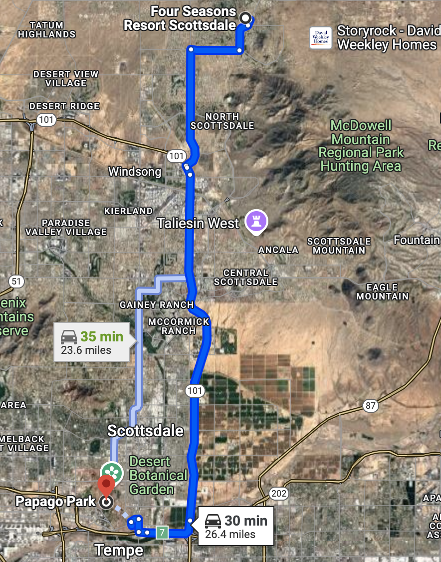 Approx 40 mins from FS Scottsdale in Central Phoenix