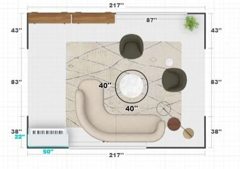 Need all new sofa, chairs, rug, side tables… I can source but just need an idea of layout and sizing